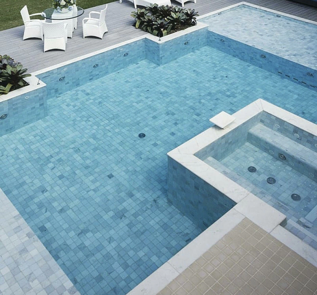 A Pedra Aguas Marinhas é uma opção elegante e sofisticada para revestir piscinas.